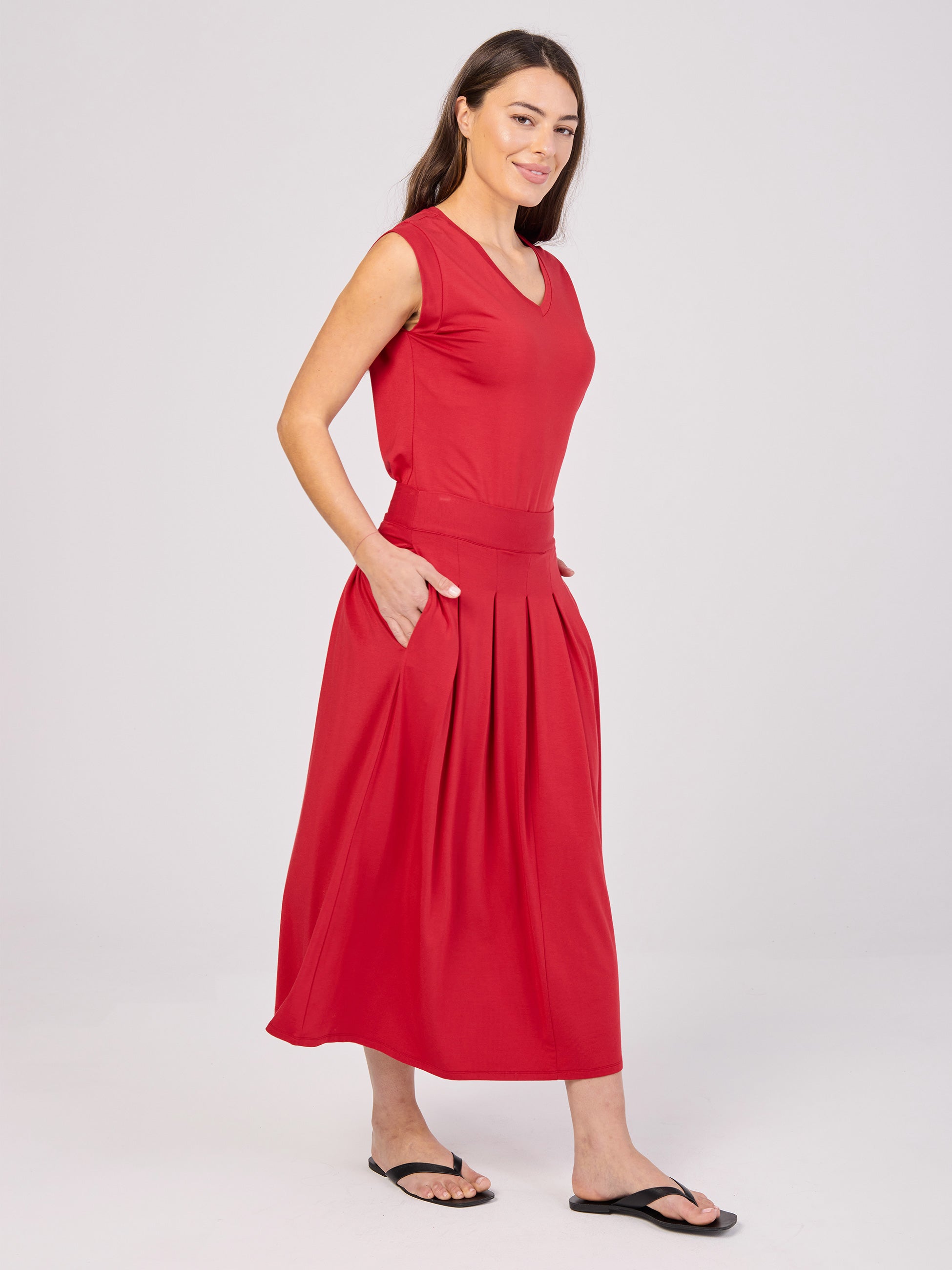 So soft, you’ll forget you’re wearing it.Made from beautifully smooth and breathable Lenzing™ Modal, this skirt is designed for effortless comfort and everyday elegance. The softly gathered pleats flow from a flattering drop waist, creating a fluid drape that moves with you.With its easy pull-on style and gentle elastic waistband, it’s a piece you’ll reach for again and again. A true wardrobe foundation, it pairs perfectly with all our Modal tops—making outfit building a breeze. Easy to wear, easy to care for, and endlessly versatile.