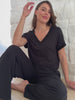 The Simone Tee is your new go-to essential, crafted from ultra-soft, sustainable Lenzing Modal®, a breathable and eco-friendly fabric known for its silky feel and draped elegance. Featuring a deep ribbed V-neck for a flattering, elongating silhouette, this tee offers timeless style with a modern edge. It is designed for versatility, so it pairs effortlessly with your favorite wide-leg pants, jeans, or layered looks.