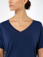 V-Neck Top is true-to-size, drapes beautifully and easy to wear. Love the feel and the ease of washing