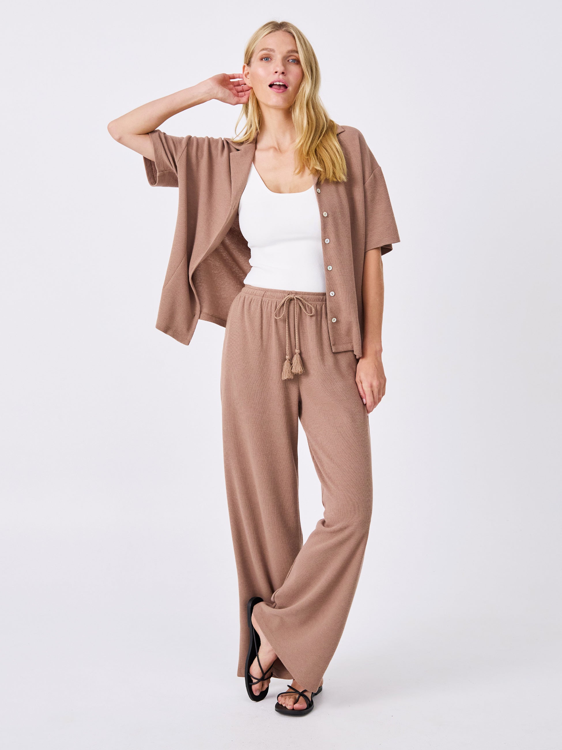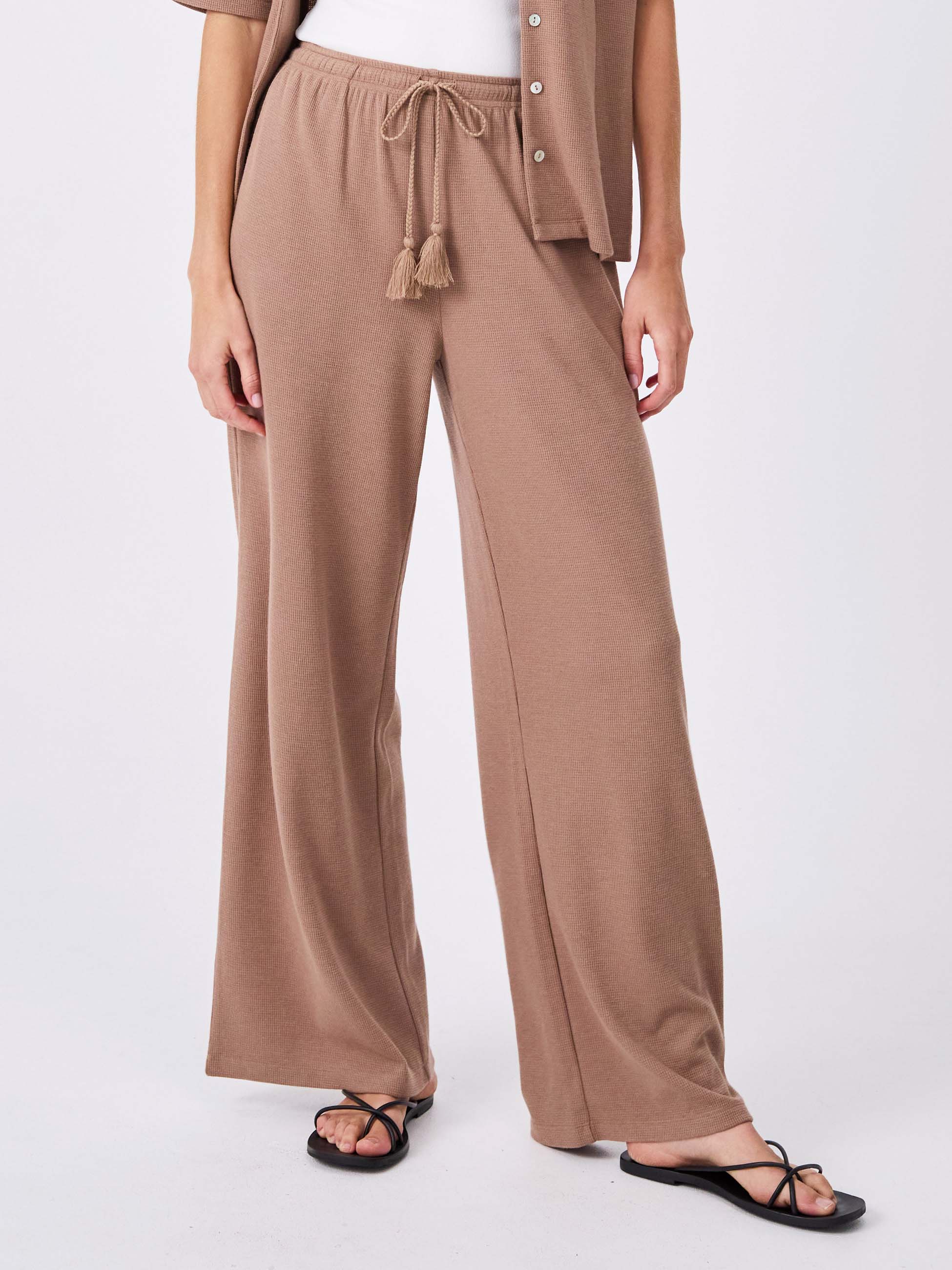 Discover the ultimate blend of comfort and style with our new pants, designed to elevate your everyday wardrobe. These pants feature a soft elastic drawcord waist for a customizable fit, ensuring maximum comfort all day. The deep side pockets are perfect for keeping your essentials close at hand. Crafted from soft waffle texture fabric, these pants provide a luxurious feel against your skin while adding a touch of unique style to your look. Don't miss out on the perfect combination of functionality and fashion.