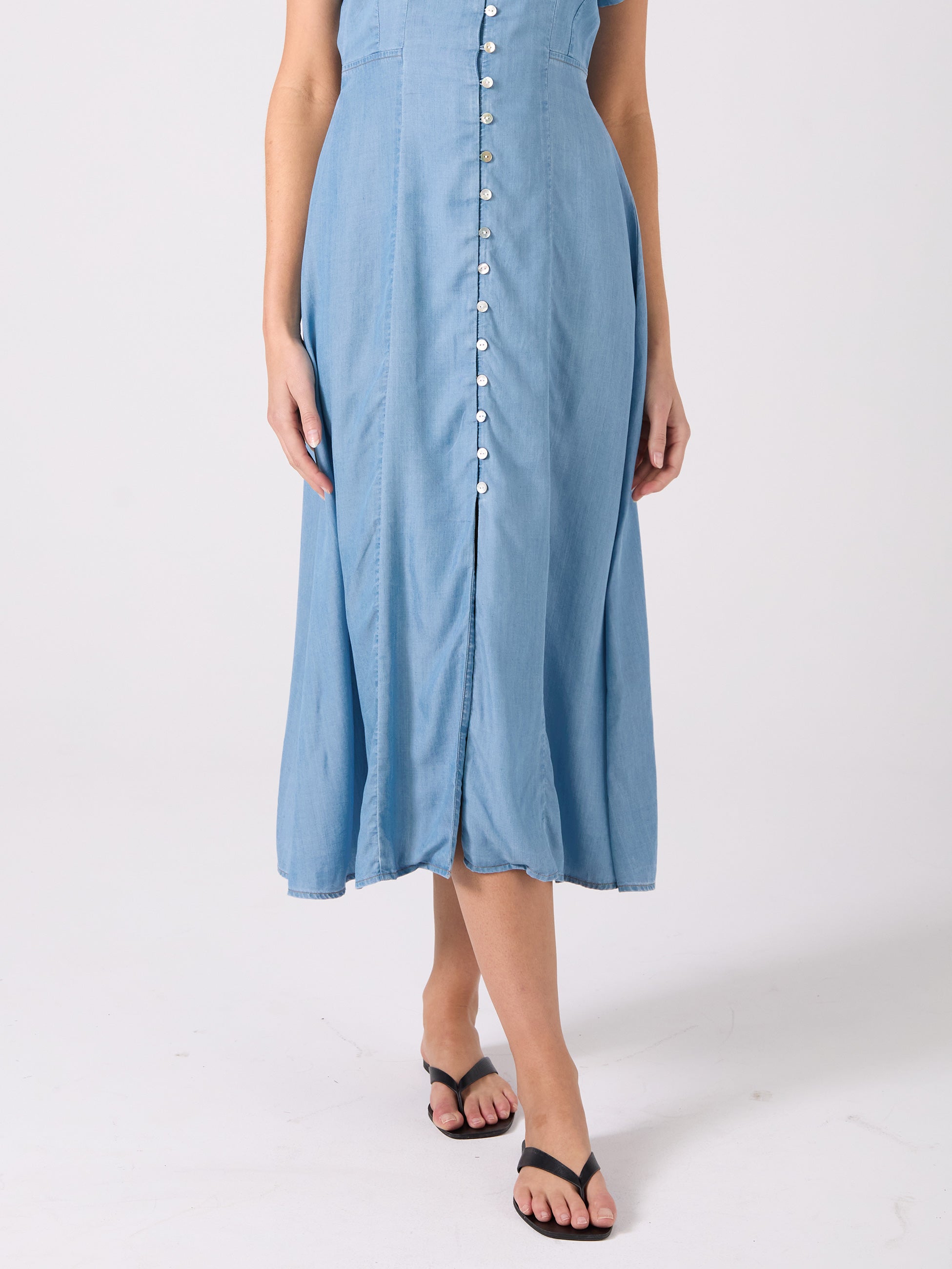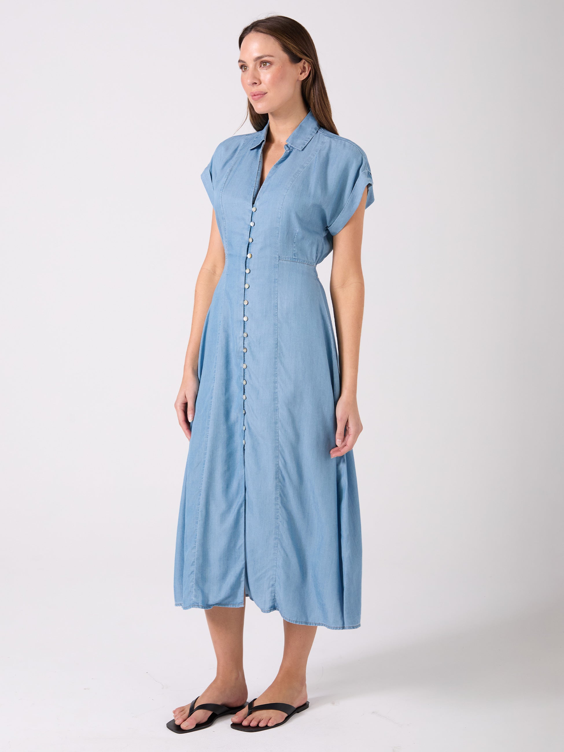 This button-through dress is designed to flatter while keeping you effortlessly comfortable. Crafted in soft sustainable Tencel. Thoughtful side elastic details give shape while allowing ease of movement, so it feels as good as it looks. The button-down front adds a timeless touch, making it a versatile piece you’ll reach for again and again.