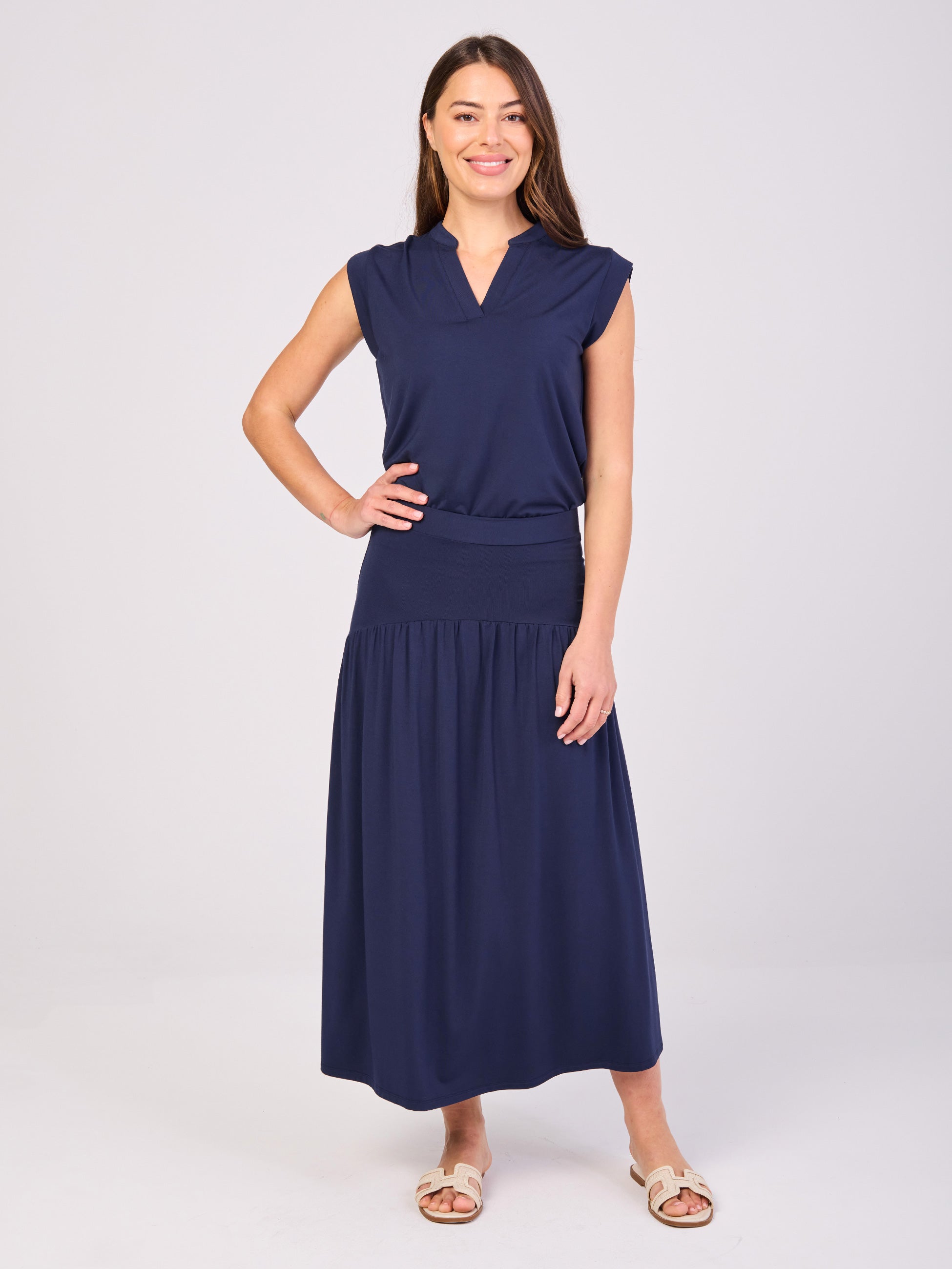 The Clara Skirt is your effortless solution to everyday style. Made from our signature Lenzing™ Modal fabric, it's exceptionally soft against the skin and drapes like a dream. The flattering drop-waist silhouette flows into a generously gathered midi-length skirt, delivering comfort without compromising style. Designed with an easy pull-on waistband and deep side pockets for function and flair, it's the skirt you'll reach for again and again. Whether you're running errands or heading out to dinner, this versatile piece transitions seamlessly from AM to PM. Seriously — this skirt works anywhere.
