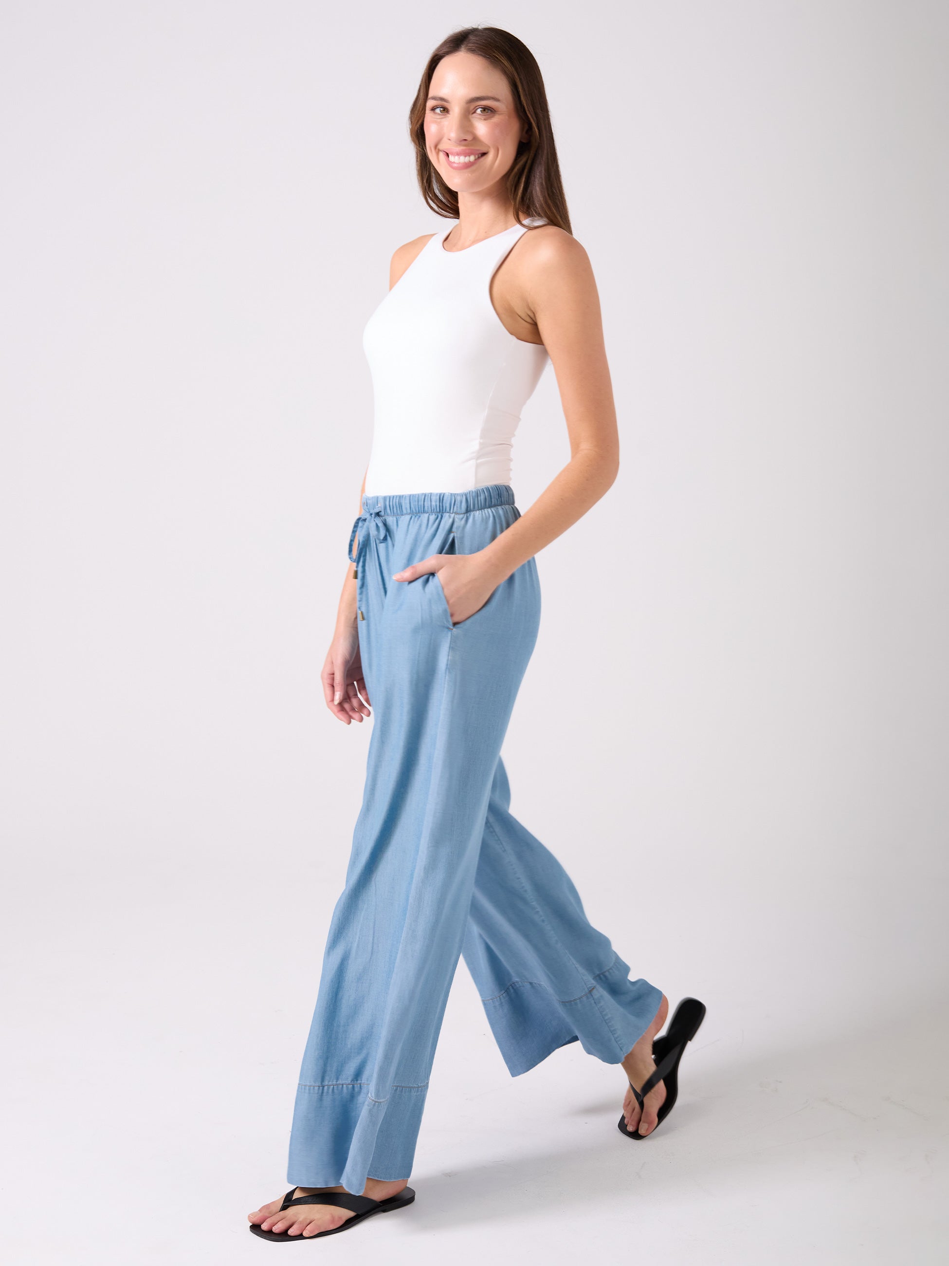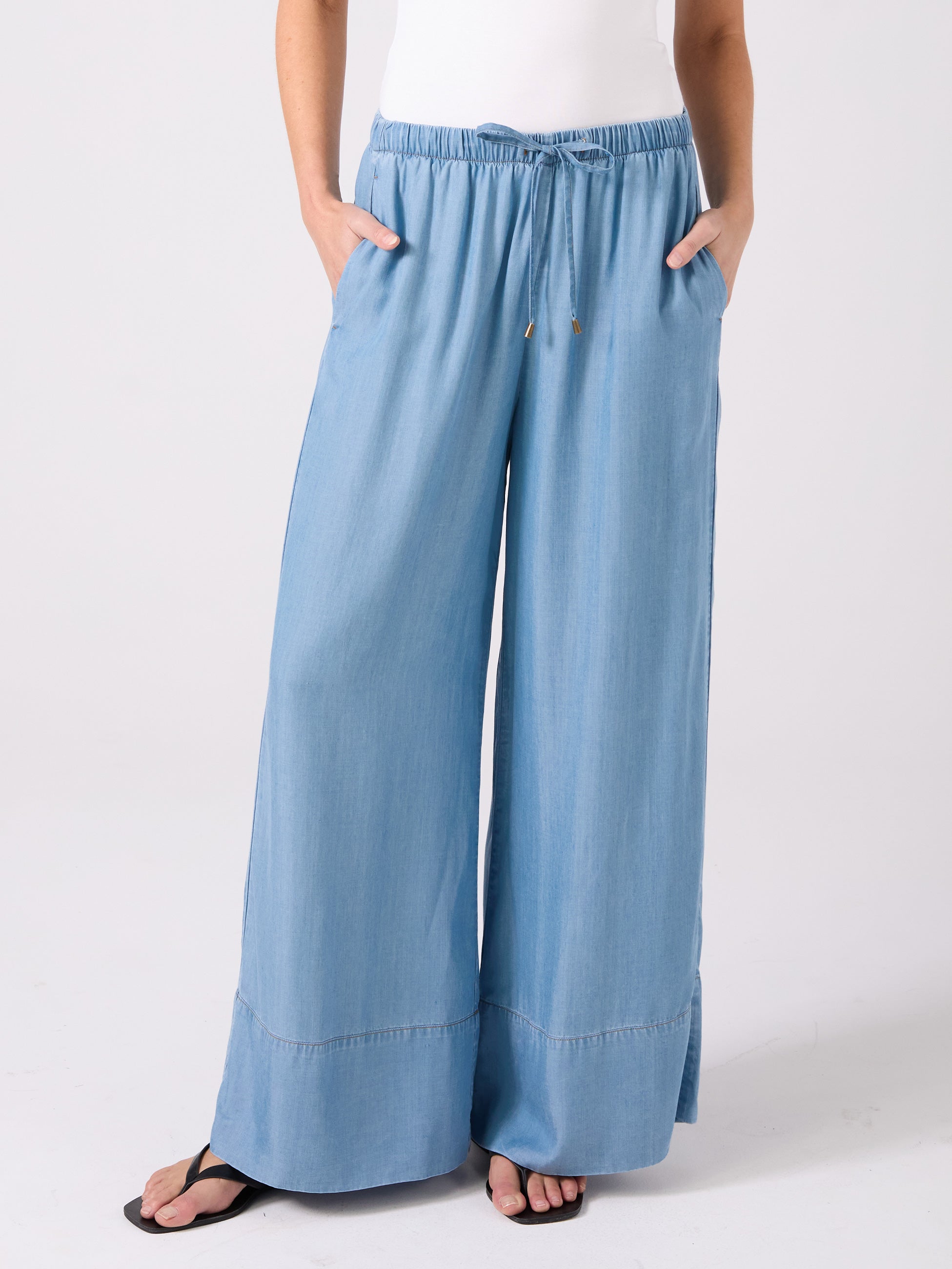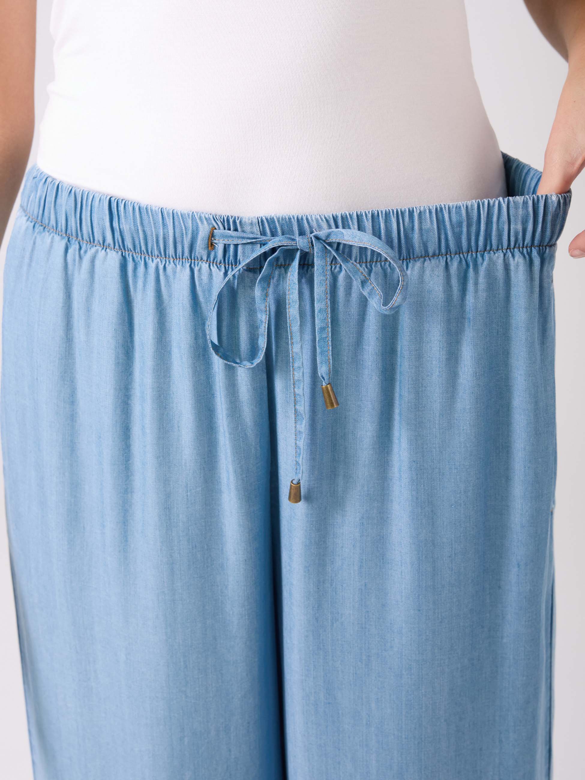 Denim Tencel Palazzo Pant - Light Denim