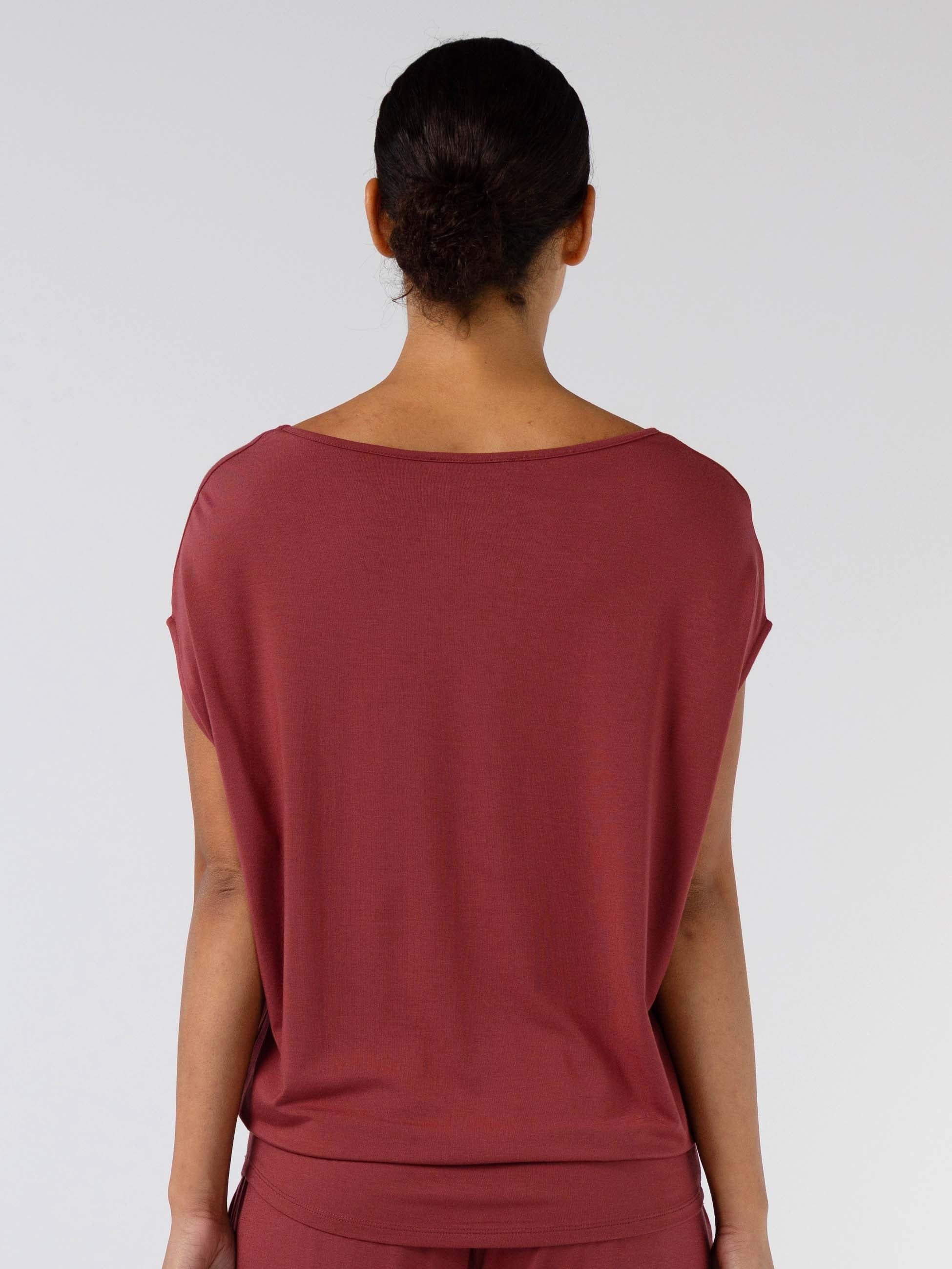 What sets this tee apart is the ultra‑soft modal that drapes beautifully while the tapered, banded hem sits neatly on the hips. Shoppers reach for it for work, travel, and yoga because it looks polished, feels cool and comfortable, and needs no ironing. The relaxed cut flatters without clinging, making it a repeat‑buy in multiple colours.