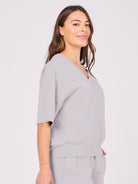 Laid-back and effortlessly cool, the V-neck sweatshirt is your go-to for off-duty comfort. Featuring a drop sleeve and a flattering deep V neckline, it’s designed with ease in mind. The ribbed waistband adds gentle shape without compromising its relaxed silhouette. Crafted from a super-soft, lightweight sweat fabric, this piece feels as good as it looks — ideal for layering or lounging.Front length: